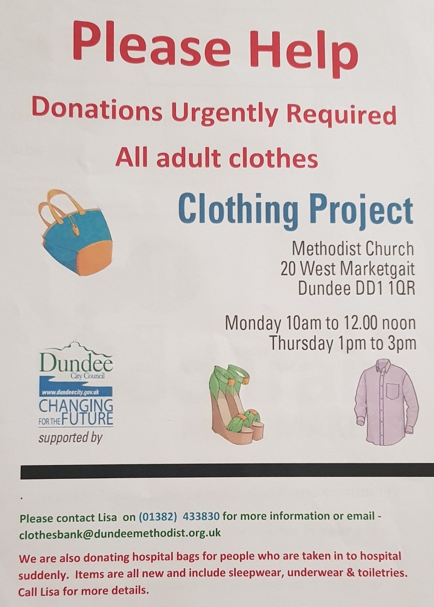 Mar212020Clothing appeal from Dundee Methodist Church Guest Contributor Fraser Macpherson An appeal from Dundee Methodist Church : Follow this news feed: Fraser Macpherson