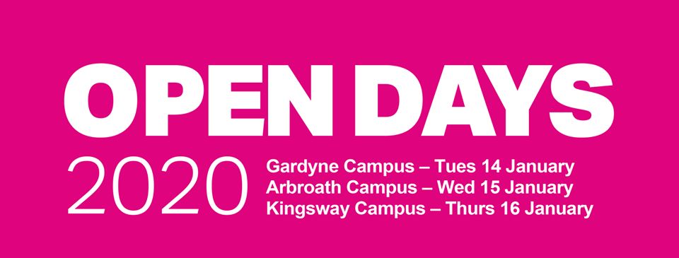 From Tuesday 14th January to Thursday 16th January, there will be the opportunity to visit Dundee & Angus College at each of its campuses, chat to teaching staff about courses, get a copy of our new prospectus, see the campus facilities and get advice about funding, course options, additional support from the Student Services team.