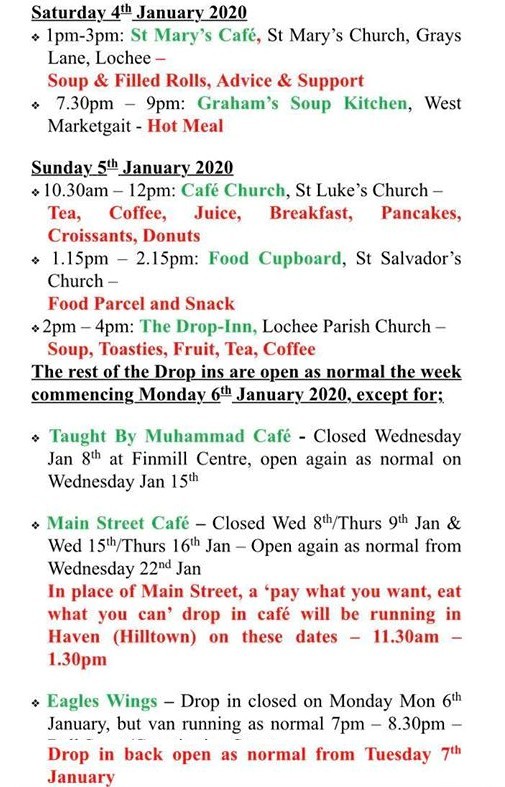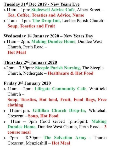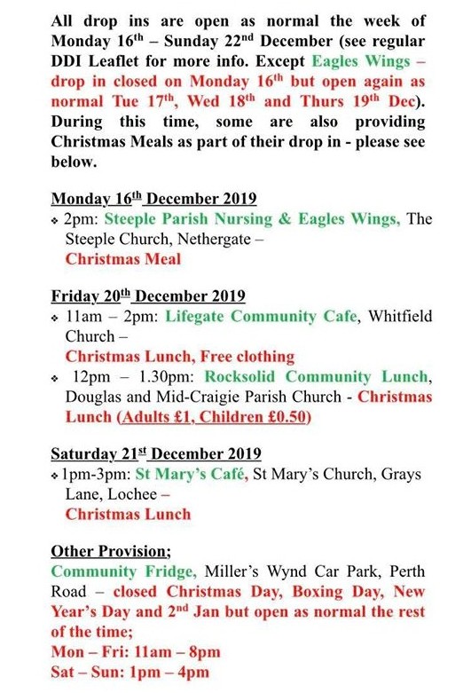 #Dundee Drop in services over the festive season