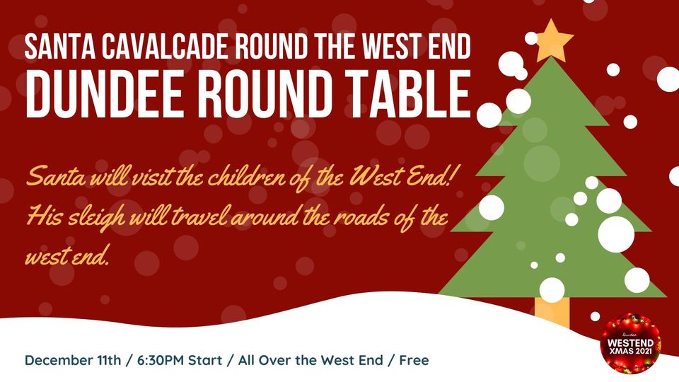 6.30pm start – Santa Cavalcade round the West End – Dundee Round Table. Santa will visit the children of the West End! His sleigh will leave the Clovis Duveau Drive area at 6.30pm and travel round Glamis Road, Blackness Road, Elliot Road, Pentland Crescent, Forest Park Road and Magdalen Yard Road areas. The Round Table’s Facebook page is at www.facebook.com/DundeeRoundTable
