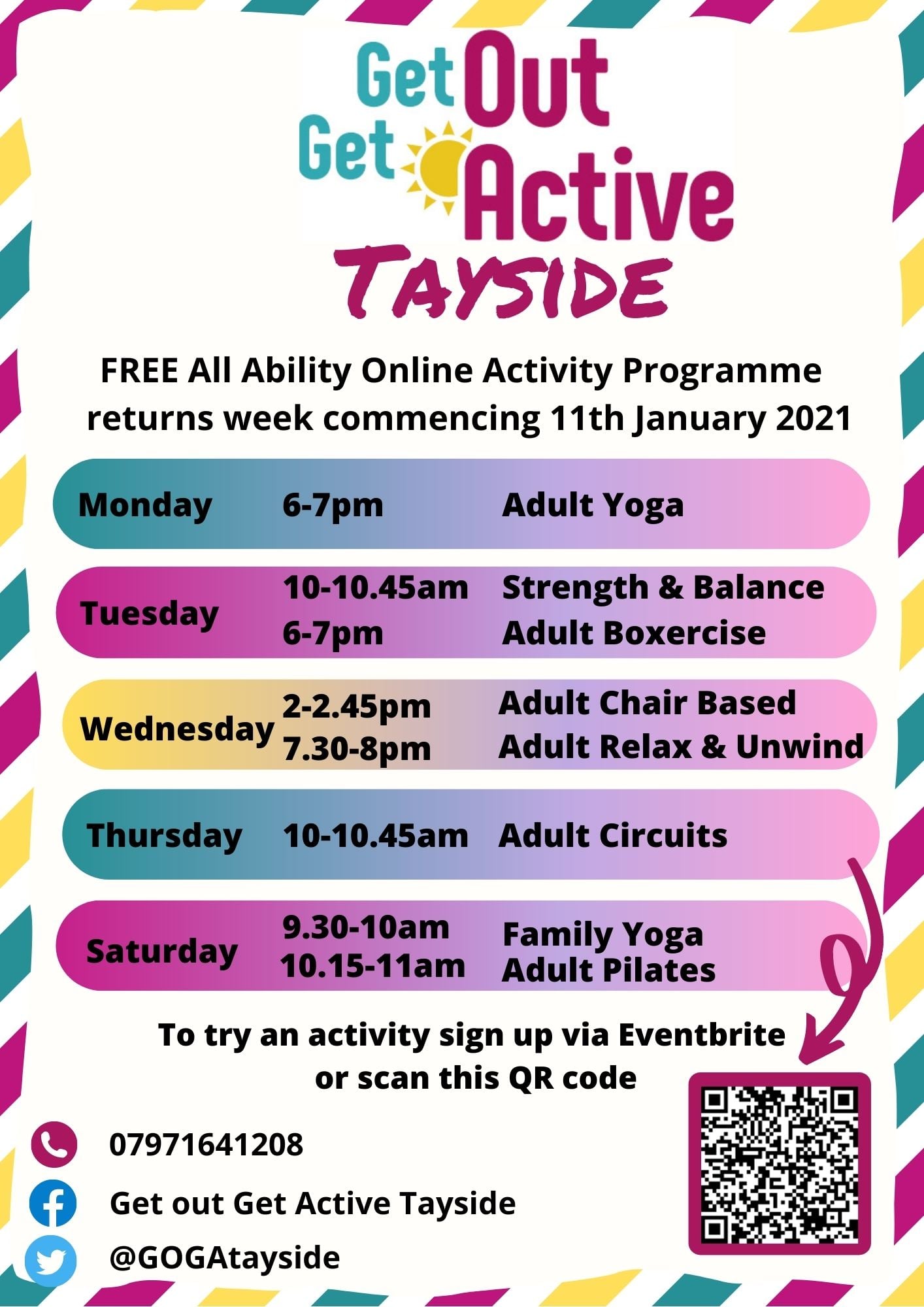 Get Out Get Active Tayside‘s Online Activity Programme starts back tomorrow – 11th January.