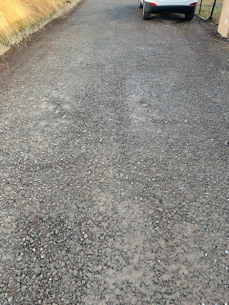 Hillcrest’s Housing Manager (Operations) had advised that “… the cost of tarmac would be prohibitive but we can of course look at some practical repairs and maintenance.” It was originally hoped to undertake this in the spring but the health emergency prevented this but it has now proved possible to improve the surface as the “after” photos now show.