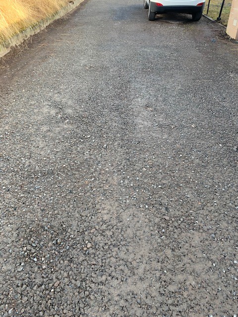 Hillcrest’s Housing Manager (Operations) had advised that “… the cost of tarmac would be prohibitive but we can of course look at some practical repairs and maintenance.” It was originally hoped to undertake this in the spring but the health emergency prevented this but it has now proved possible to improve the surface as the “after” photos now show.