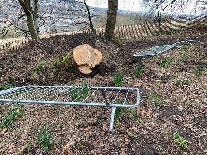 Residents have highlighted to me that, following several trees being felled up Balgay Hill in recent months, the safety barriers have been left behind.