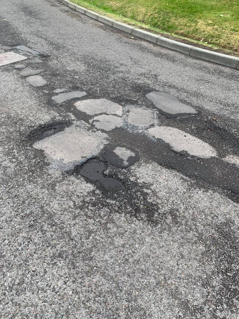 I have recently received residents’ concerns about the need for repairs to the roads surface in Clayhills Drive – see photos below.