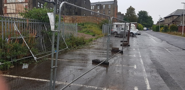 When the recent demolition works took place in Blackness Road east of Ashbank Road, the contractor placed barriers round the site including across some of the car parking to the rear in Glenagnes Street.