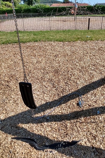 I have reported this to environment management at the City Council asking for a repair and a safety check at the other swings here too.