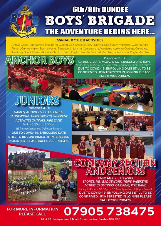 Sep192020Latest information from 6th/8th Boys’ Brigade #dundeewestend Guest Contributor Fraser Macpherson Follow this news feed: Fraser Macpherson