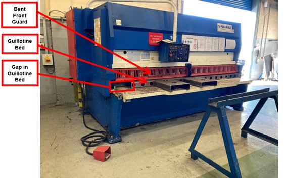 – An HSE investigation found a large gap in the bed of the guillotine that allowed access to dangerous parts of the machinery
