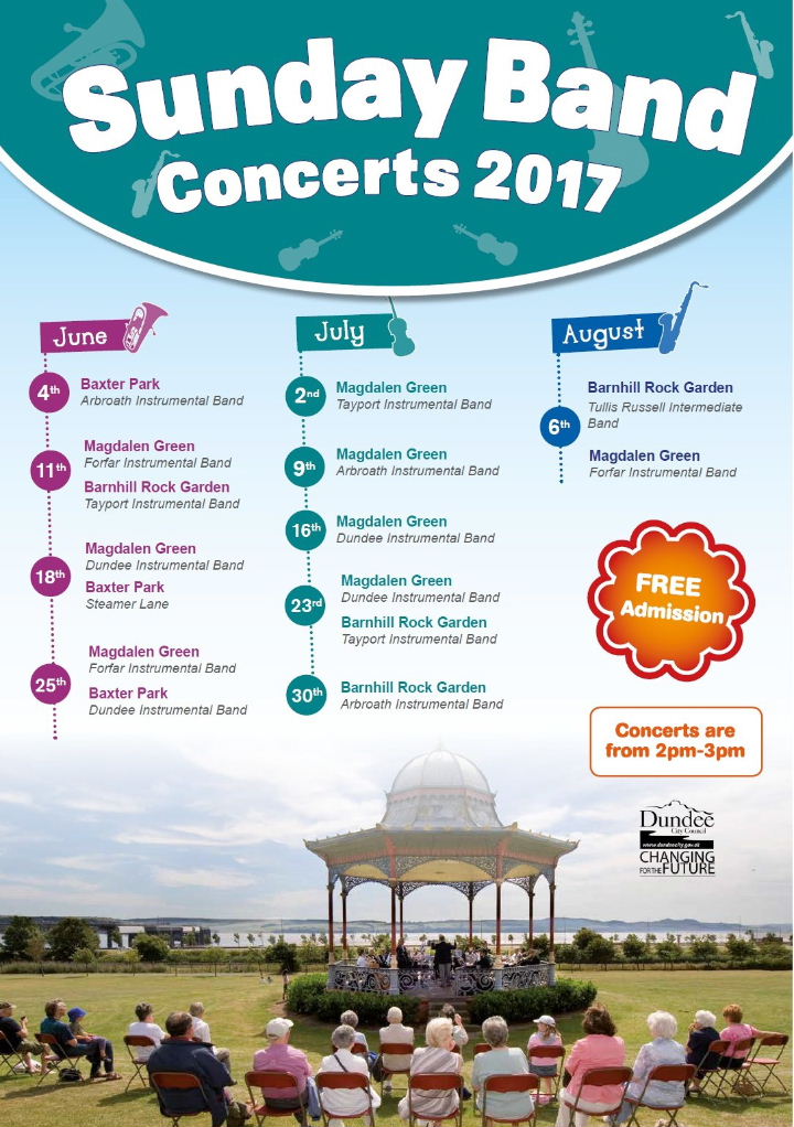 The Sunday Band Concerts on Magdalen Green start (for 2017) on Sunday coming – 11th June.