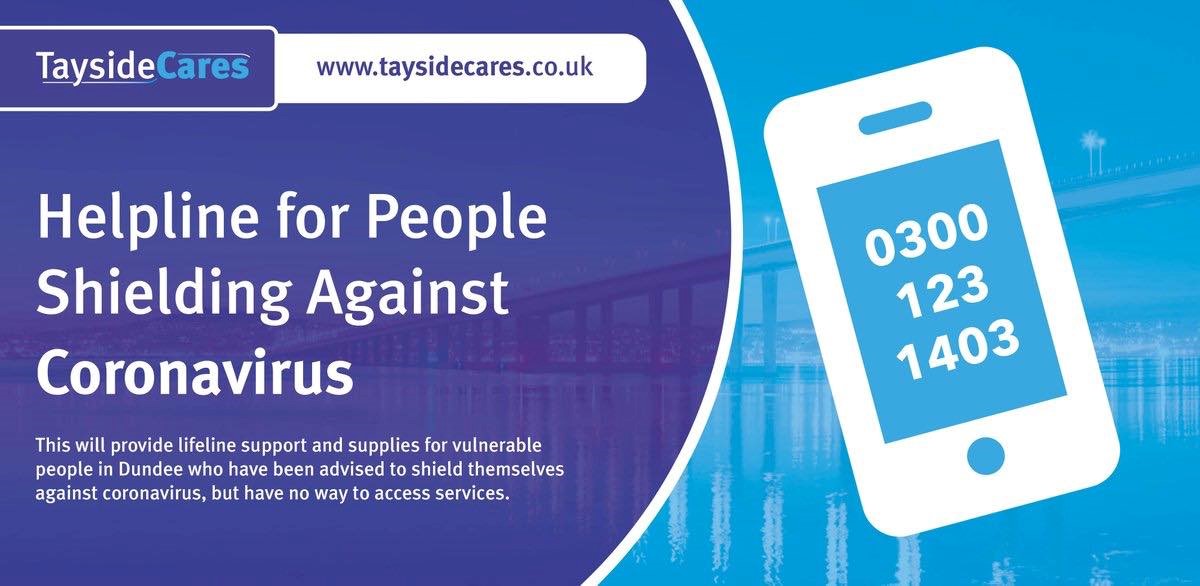 I thought it would be useful to give a reminder of the Dundee helpline to provide lifeline support and supplies for vulnerable people who have been advised to shield themselves against coronavirus, but have no way to access services.