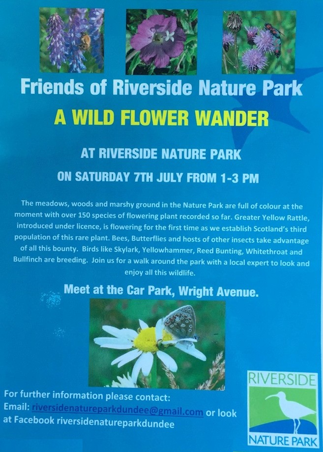 The next Friends of Riverside Nature Park event – a Wild Flower Wander at the park – will be on Sunday 7th July from 1pm to 3pm.