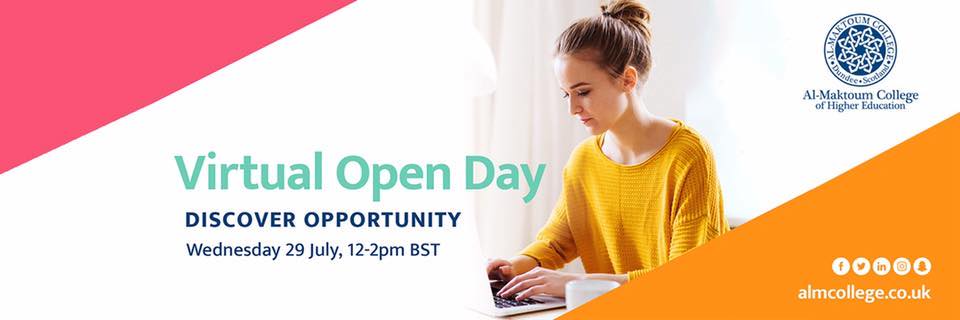 Next Wednesday – 29th July – you can Zoom into Al-Maktoum College of Higher Education’s world of exciting career opportunities and new horizons its virtual Open Day.