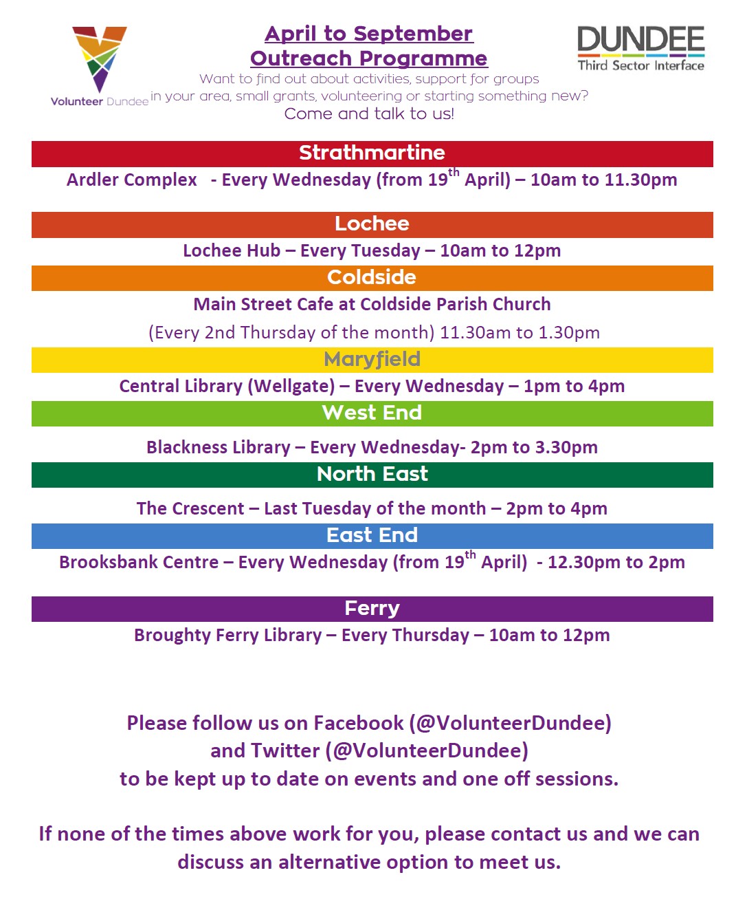 Volunteer Dundee has a drop-in session for the West End every Wednesday at Blackness Library – where you can find out more about activities and volunteering opportunities in our area – see below!